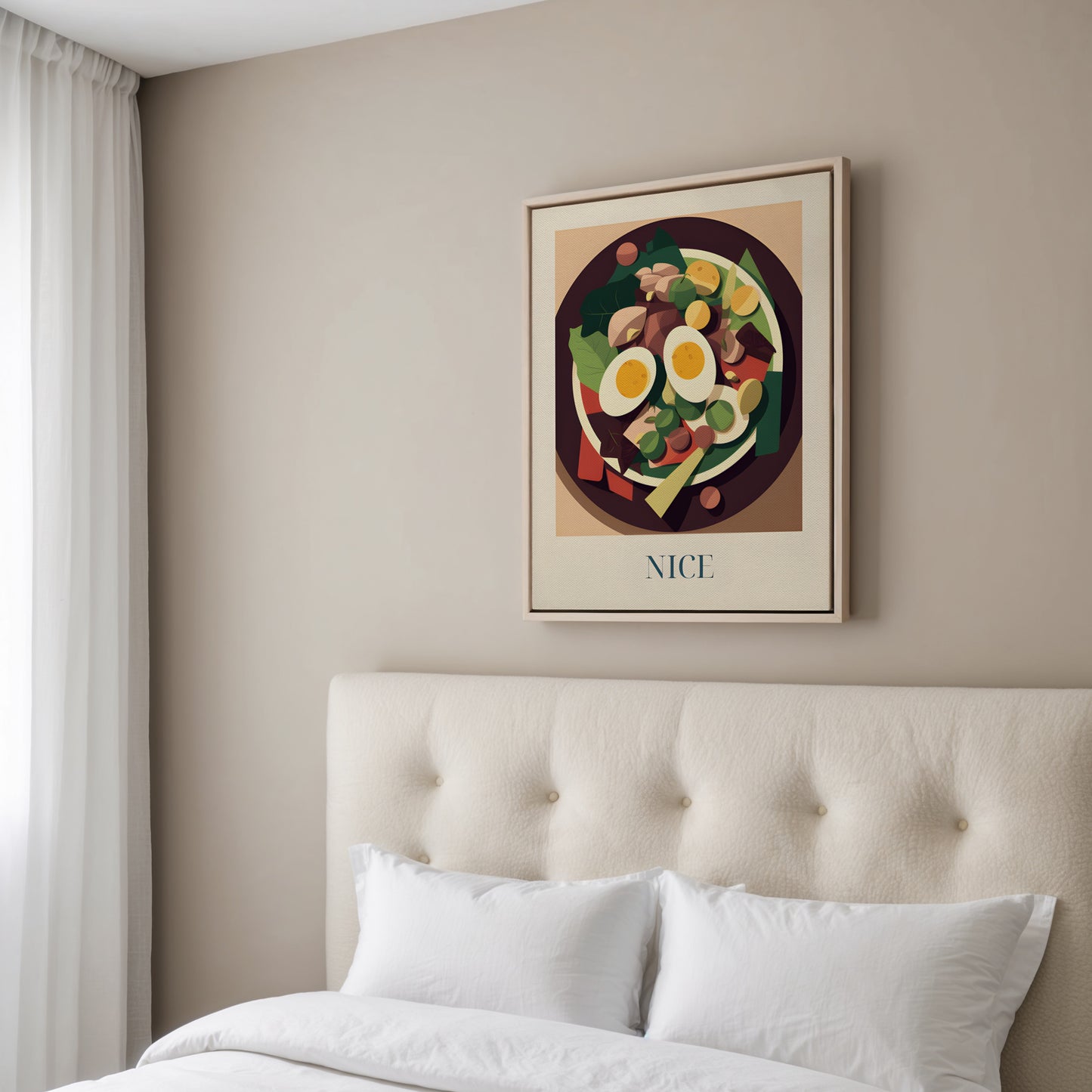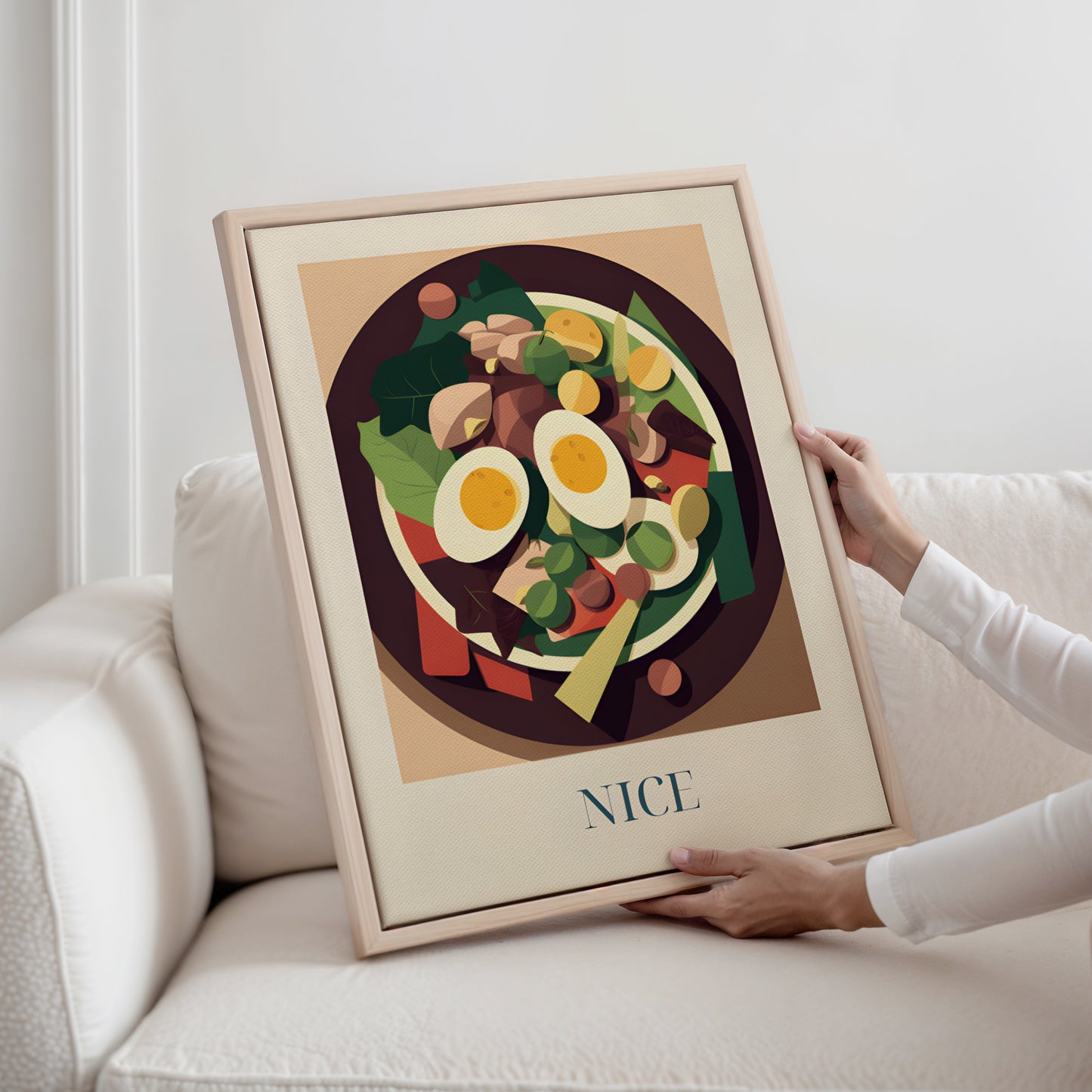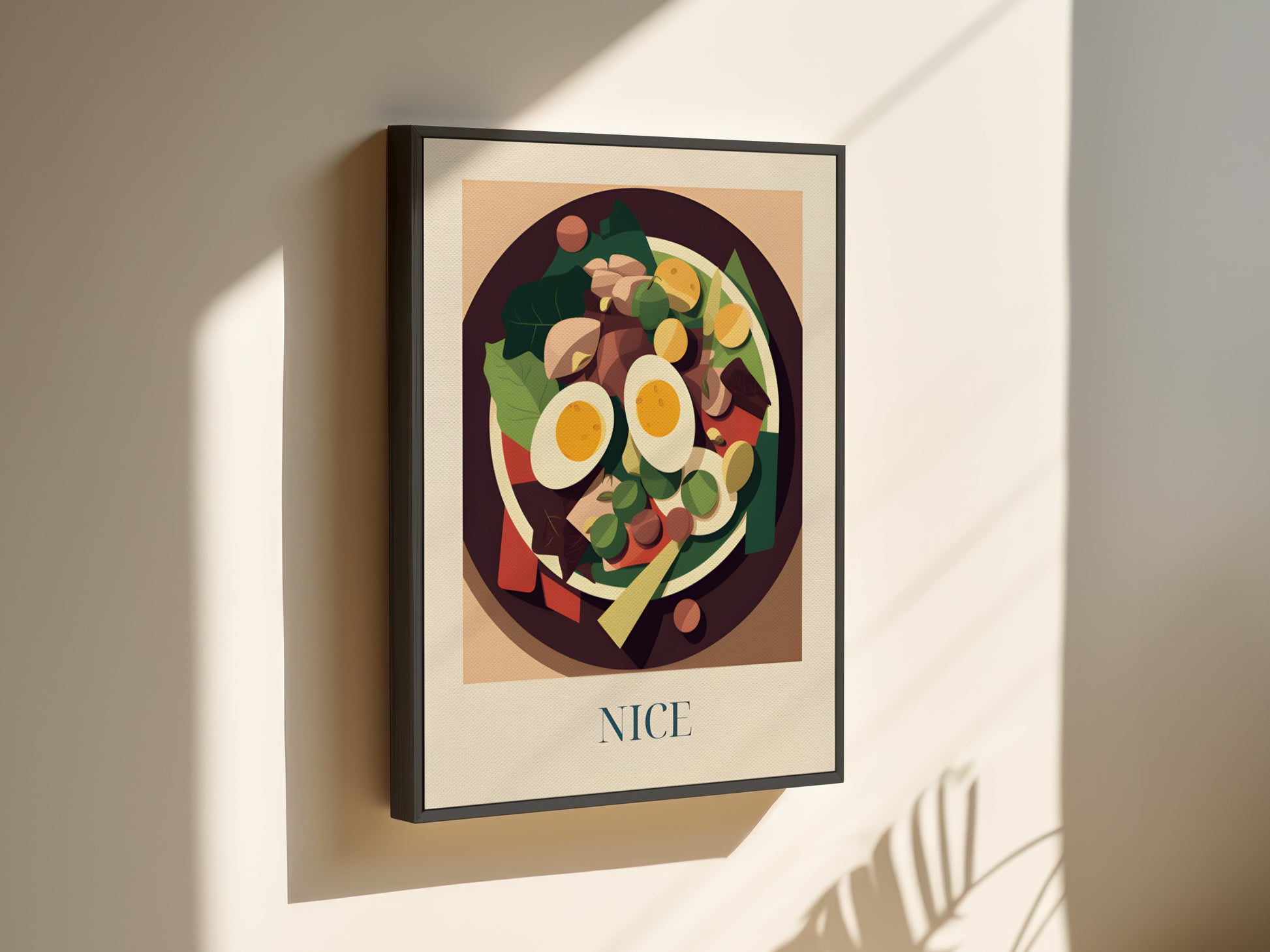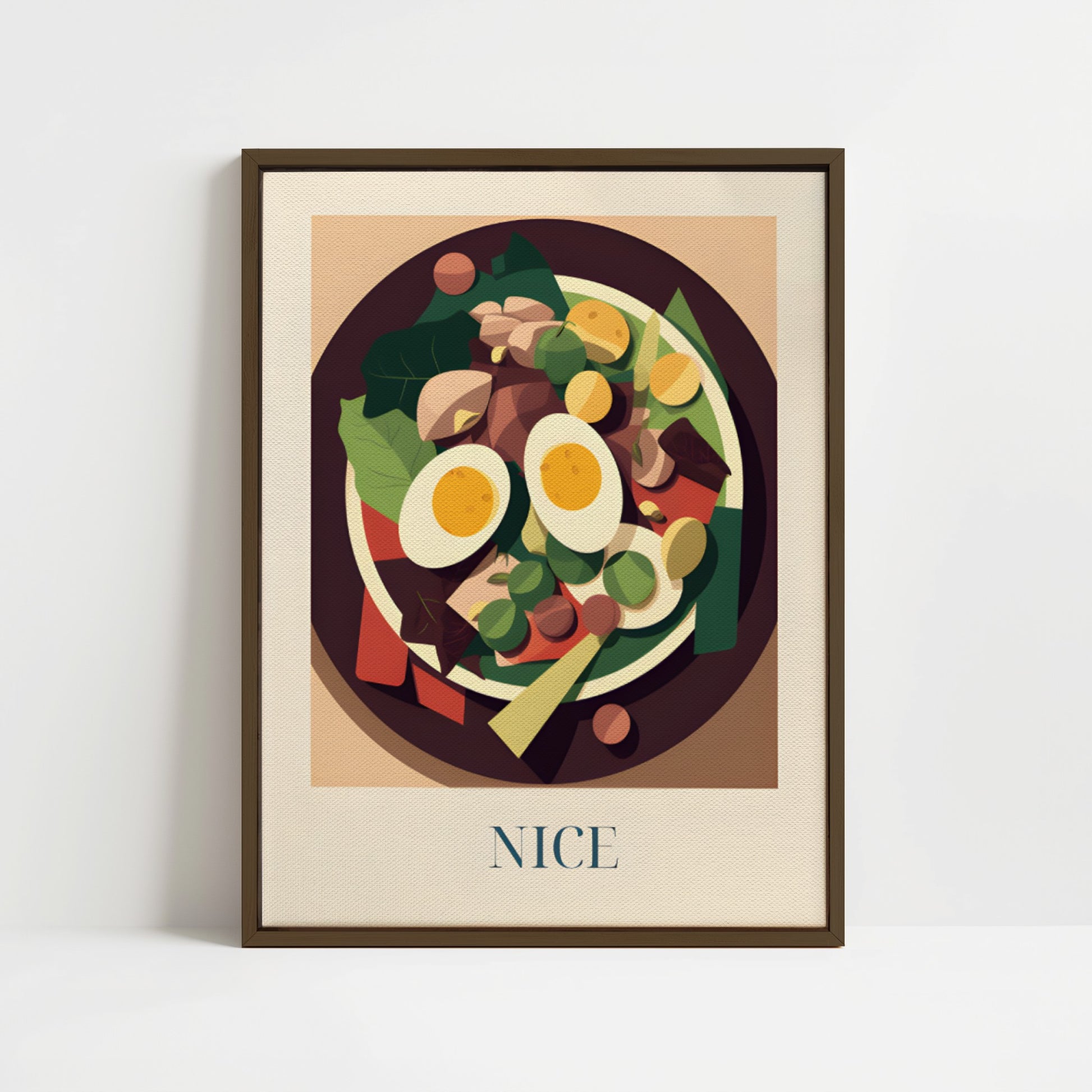 Feiern Sie die frische Eleganz Nizzas mit dieser gerahmten Leinwand , die einen klassischen Nizza- Salat zeigt – farbenfroh, knackig und voller mediterranem Geschmack . Inspiriert von Mittagessen am Meer , provenzalischen Märkten und dem sonnigen Lebensstil der Côte d' Azur bringt dieses Kunstwerk einen leichten und lebendigen Hauch Südfrankreichs in Ihr Zuhause .