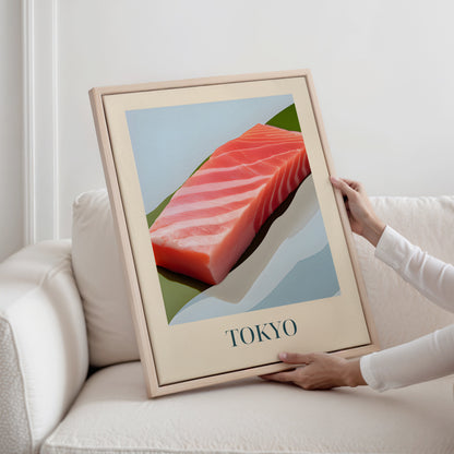 Feiern Sie den raffinierten Geschmack Tokios mit dieser gerahmten Leinwand mit Otoro- Thunfisch – reichhaltig, buttrig und in der japanischen Küche geschätzt . Inspiriert von Sushi- Theken, stiller Präzision und der Eleganz der Tokioter Esskultur bringt dieses Kunstwerk einen Hauch von Umami -Raffinesse in Ihr Zuhause.