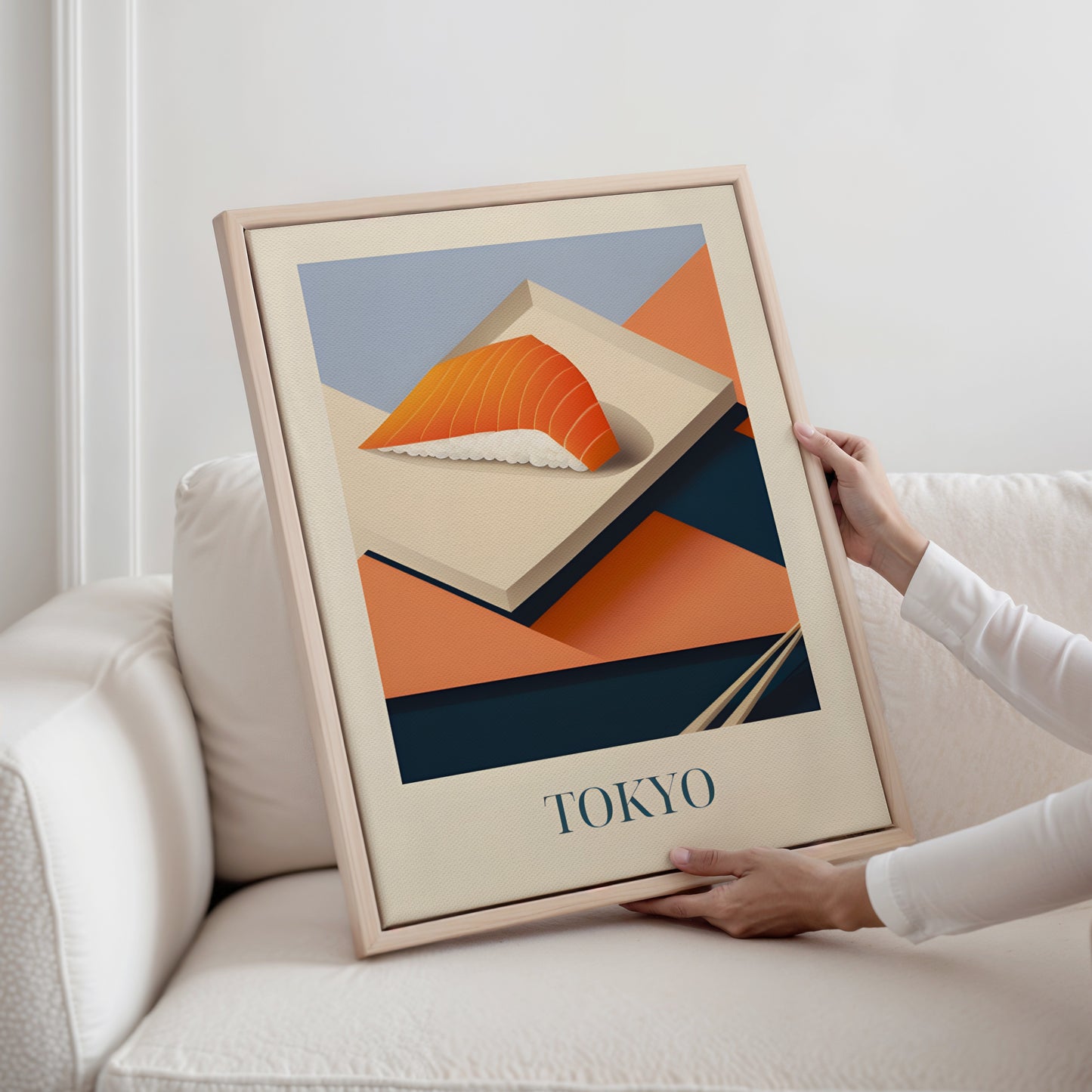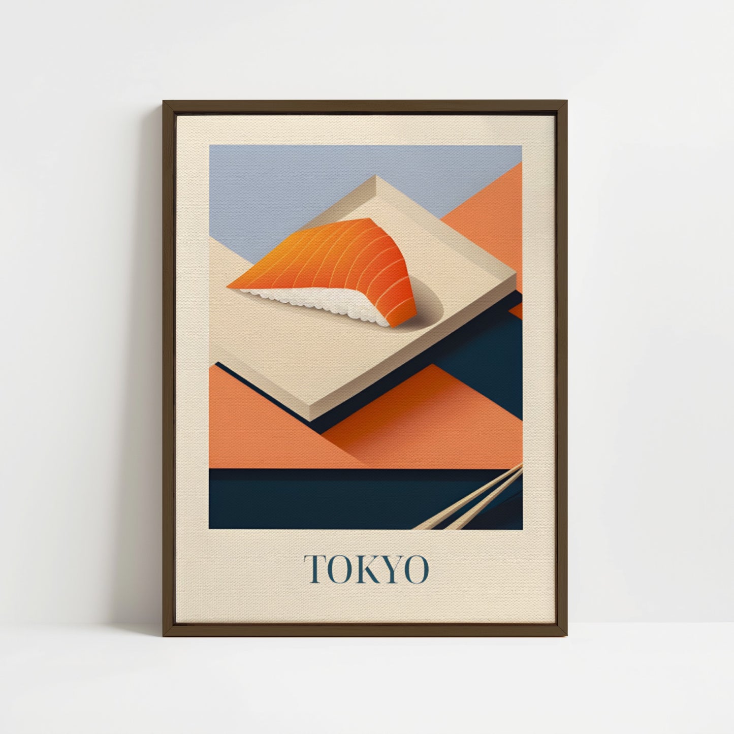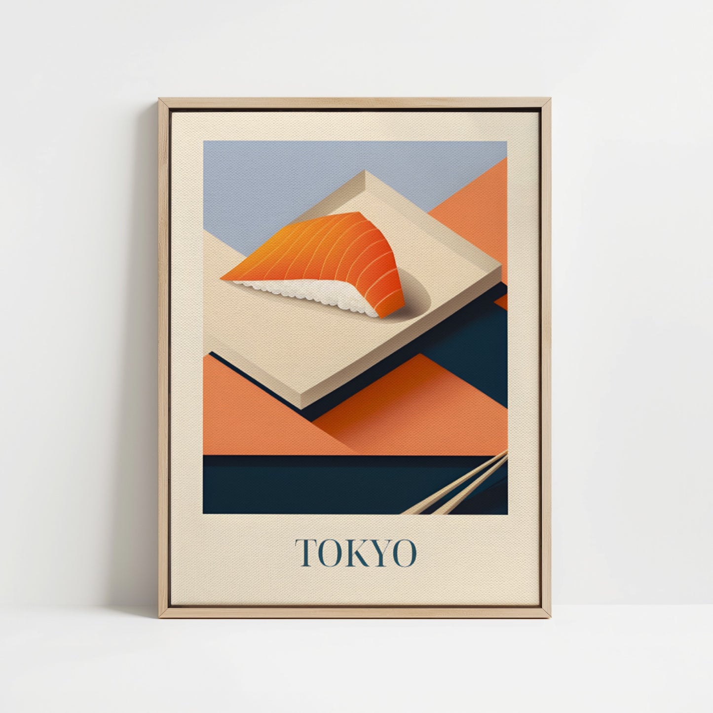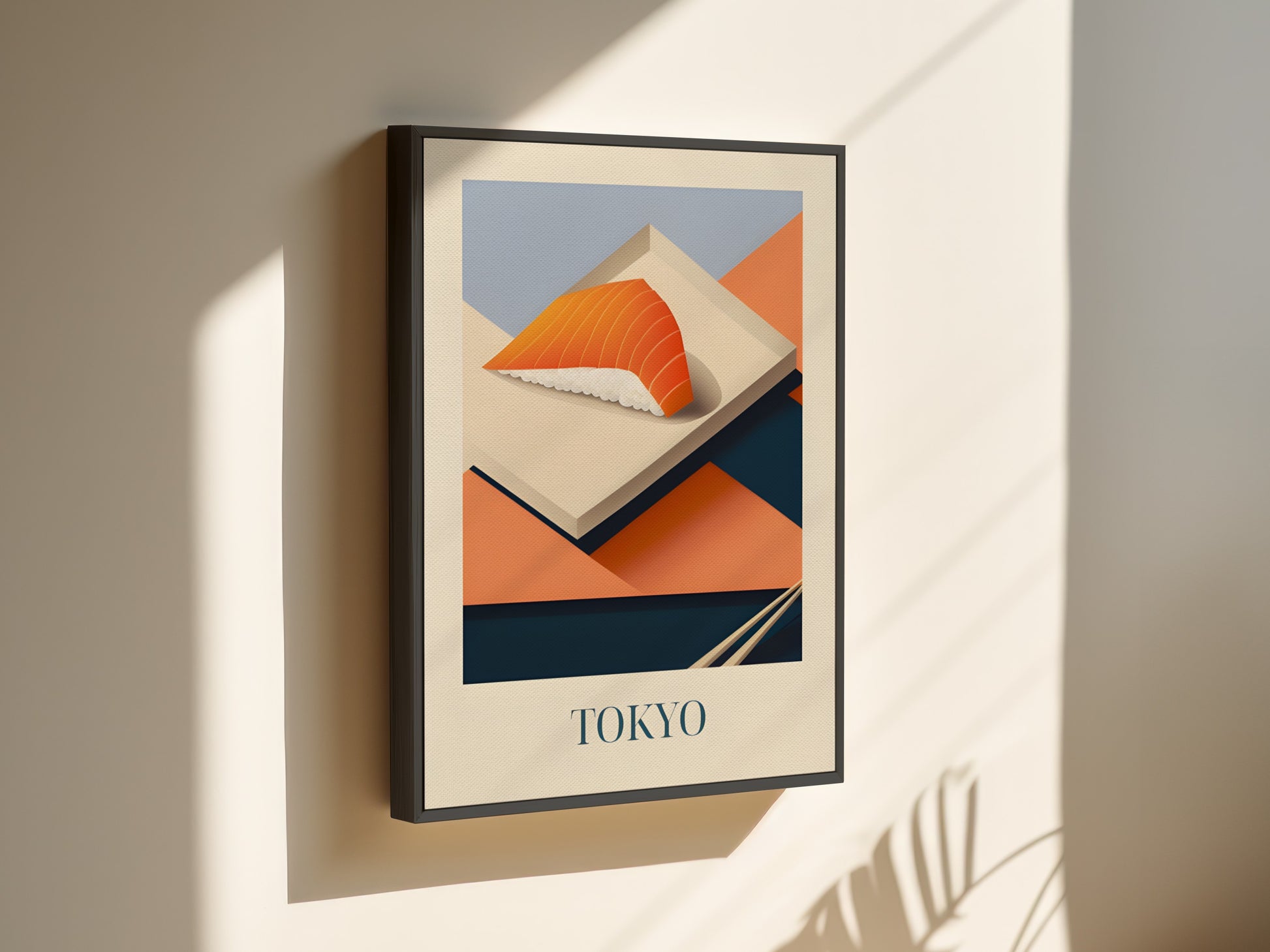 Feiern Sie die raffinierte Schlichtheit Tokios mit dieser gerahmten Leinwand mit Lachs -Nigiri – frisch, zart und wunderbar ausgewogen. Inspiriert von Sushi- Bars , stiller Handwerkskunst und der Eleganz der japanischen Küche bringt dieses Kunstwerk einen ruhigen und geschmackvollen Hauch von Tokio in Ihr Zuhause.
