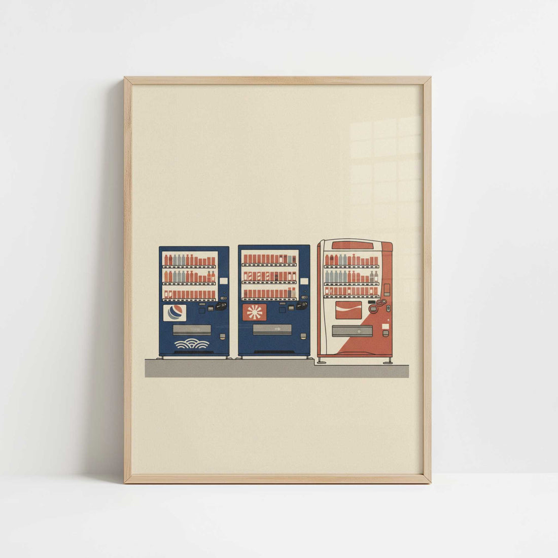 Celebrate the quirky charm of Japan with 'Always a Vending Machine Nearby' – a Japandi-style tribute to the nation's iconic convenience culture. Vending machines are found on nearly every street corner in Japan, symbolizing innovation, reliability, and daily comfort. This minimalist artwork blends modern design with traditional calm, perfect for Japandi interiors and lovers of Japanese culture.