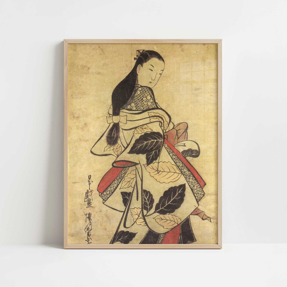 Celebrate the elegance of Edo-period Japan with this refined ukiyo-e print by Kaigetsudo Anchi. Featuring graceful lines and delicate color, this artwork captures the serene beauty and ornate fashion of a standing courtesan. A timeless piece of Japanese woodblock artistry for any space.