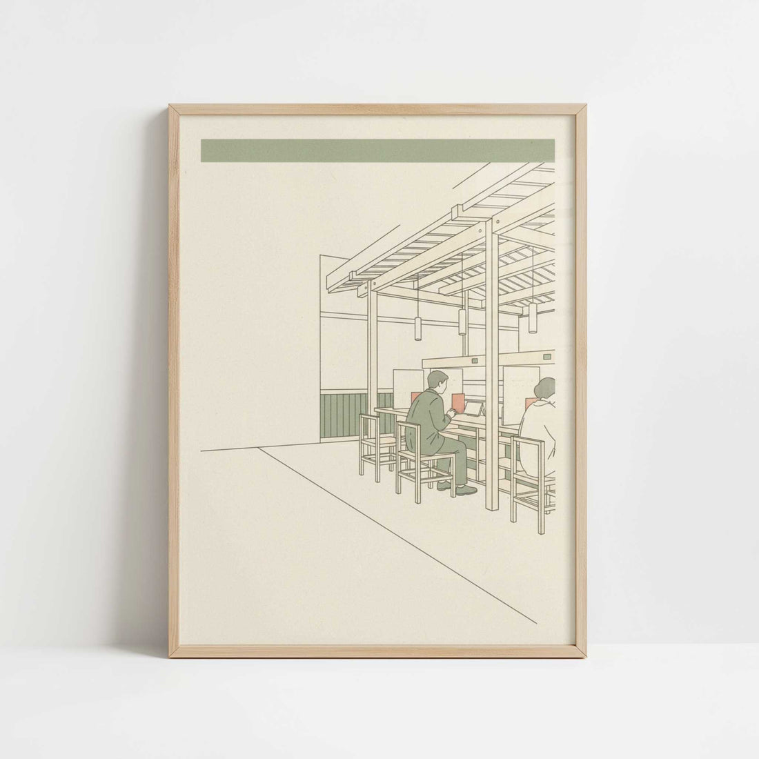Step into the quiet elegance of Japanese culture with 'Eating Quietly Inside the Sushi Restaurant'—a Japandi-inspired tribute to the serene ritual of sushi dining. This artwork captures the harmony and minimalism found in traditional sushi restaurants, reflecting Japan's deep respect for food and atmosphere. It is a perfect blend of iconic cultural identity and Japandi decor, bringing peaceful refinement to any space.