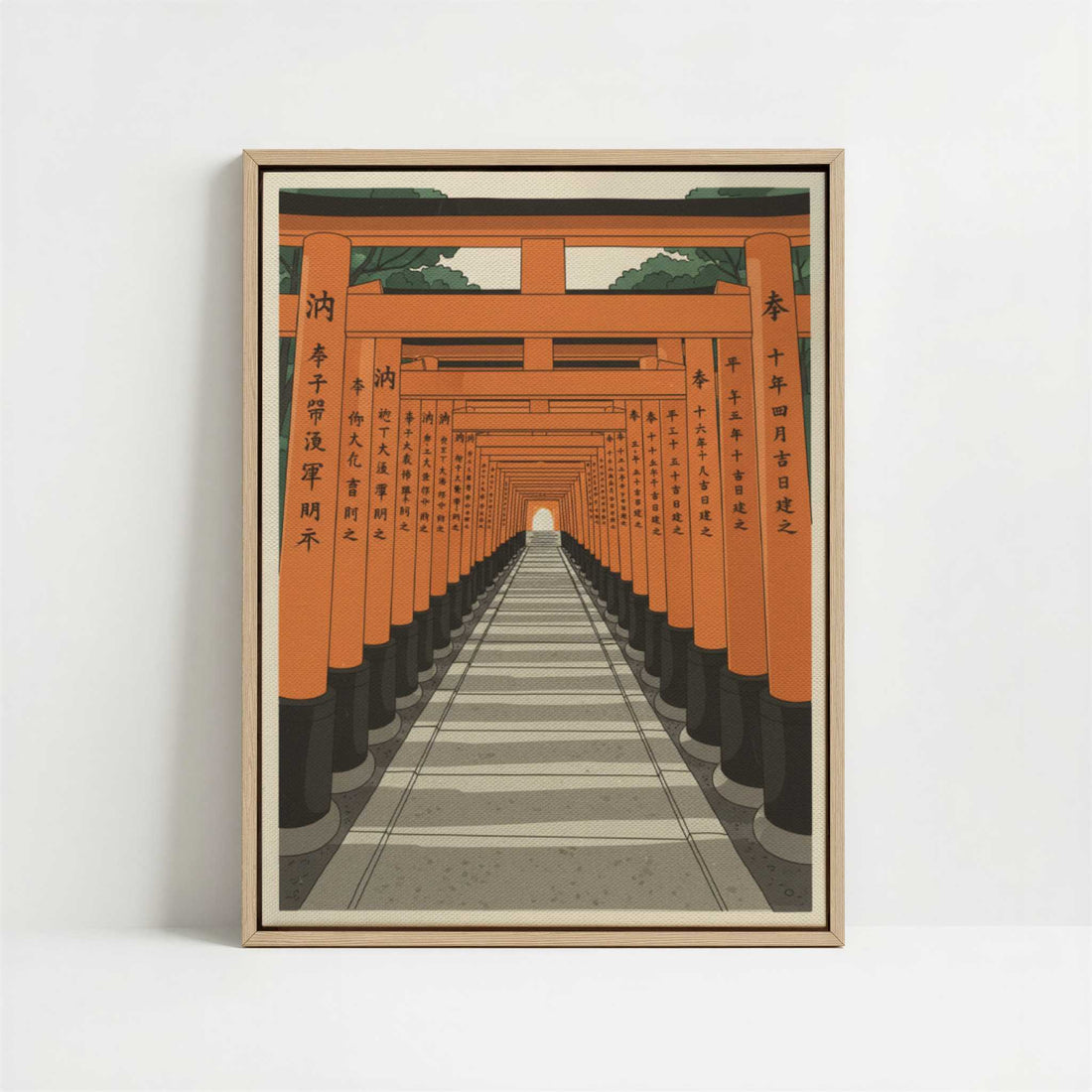 Celebrate the timeless beauty of Fushimi Inari Taisha with this Japandi-style framed canvas. Featuring Kyoto’s iconic vermilion torii gates, this piece pays homage to Japan’s Shinto heritage and minimalist design. A refined tribute to Japanese culture, perfect for modern Japandi interiors.