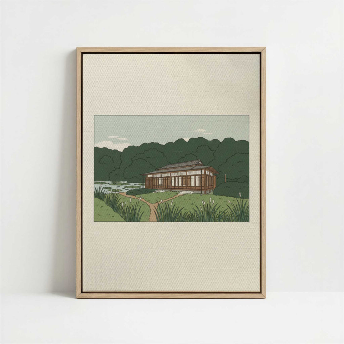 Step into serene tradition with this Japandi-styled tribute to Meiji Jingu, Tokyo's iconic Shinto shrine. Nestled in a tranquil forest, it's a symbol of harmony, reverence, and Japanese cultural heritage. This minimalist framed canvas captures the spiritual essence of the shrine paths, bringing timeless calm to Japandi interiors.