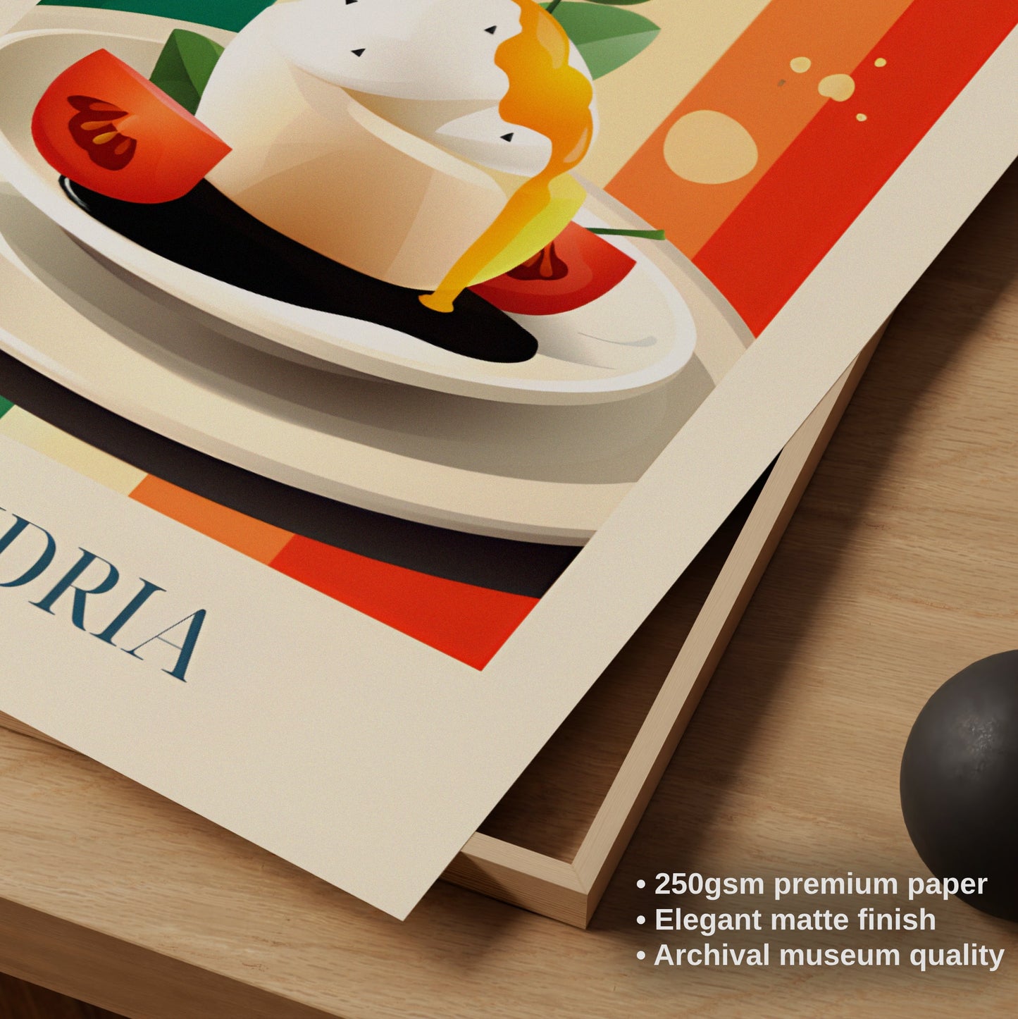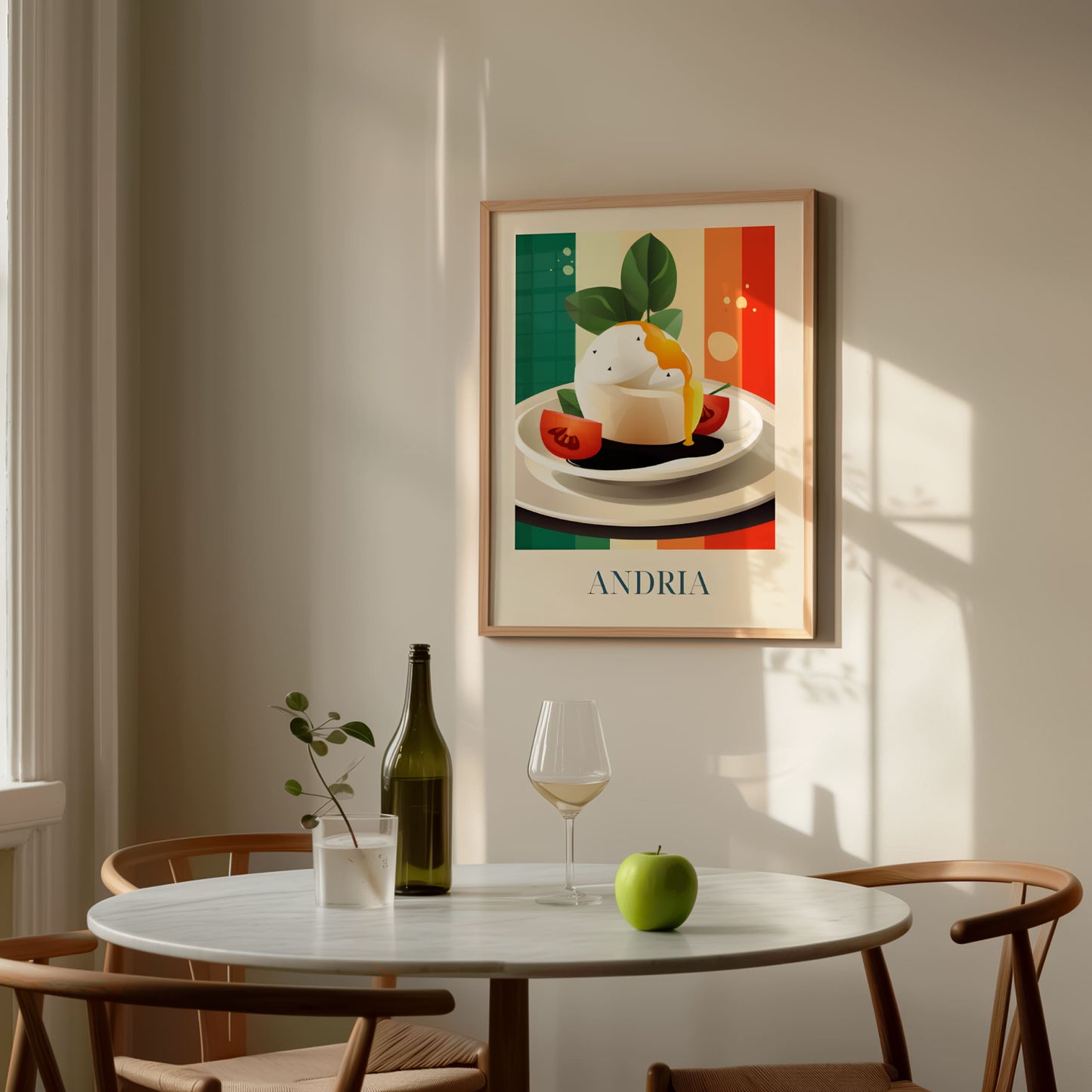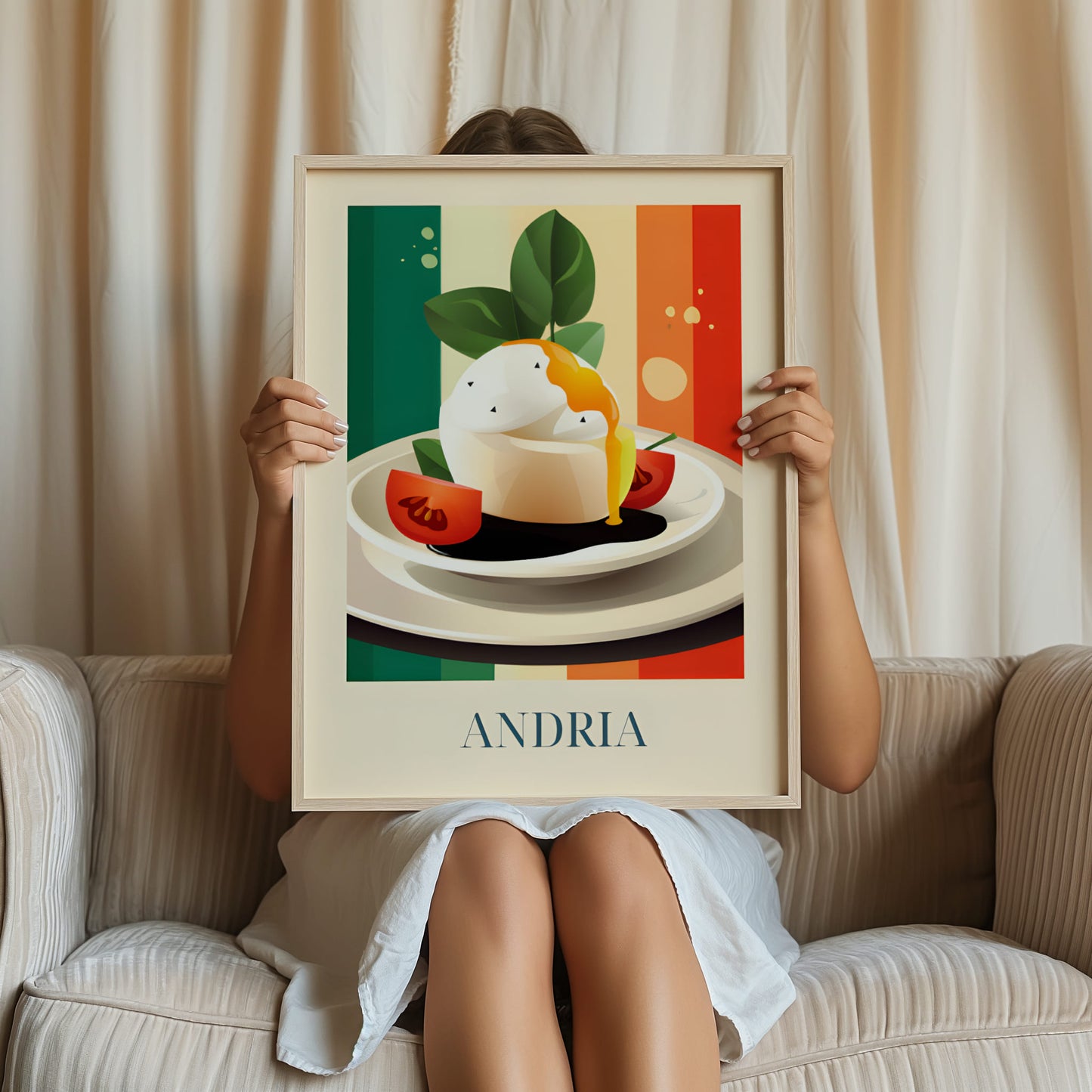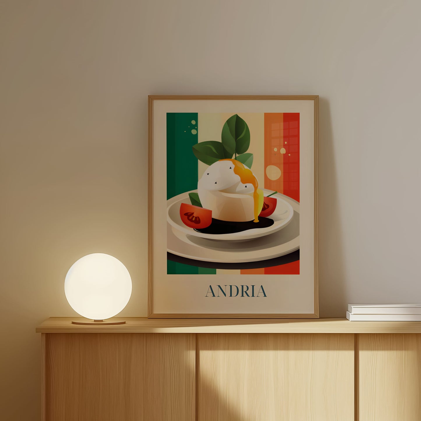 Celebrate the creamy elegance of Andria with this poster featuring burrata—fresh, delicate, and full of southern Italian soul. Inspired by olive groves, sunlit tables, and the artisanal cheese traditions of Puglia, this artwork brings a soft and luxurious taste of Italy into your home.