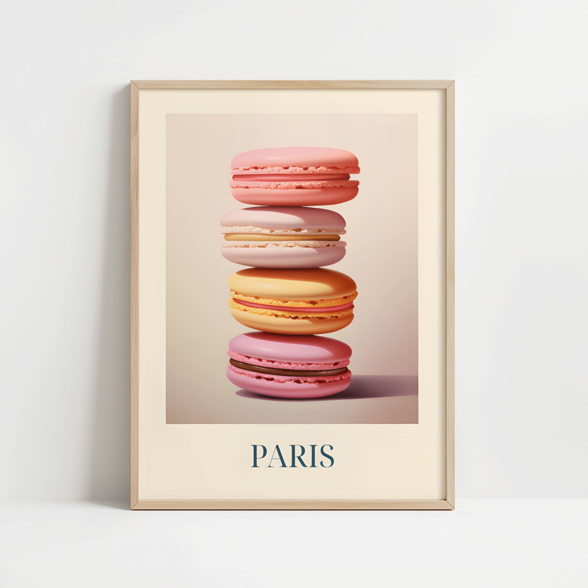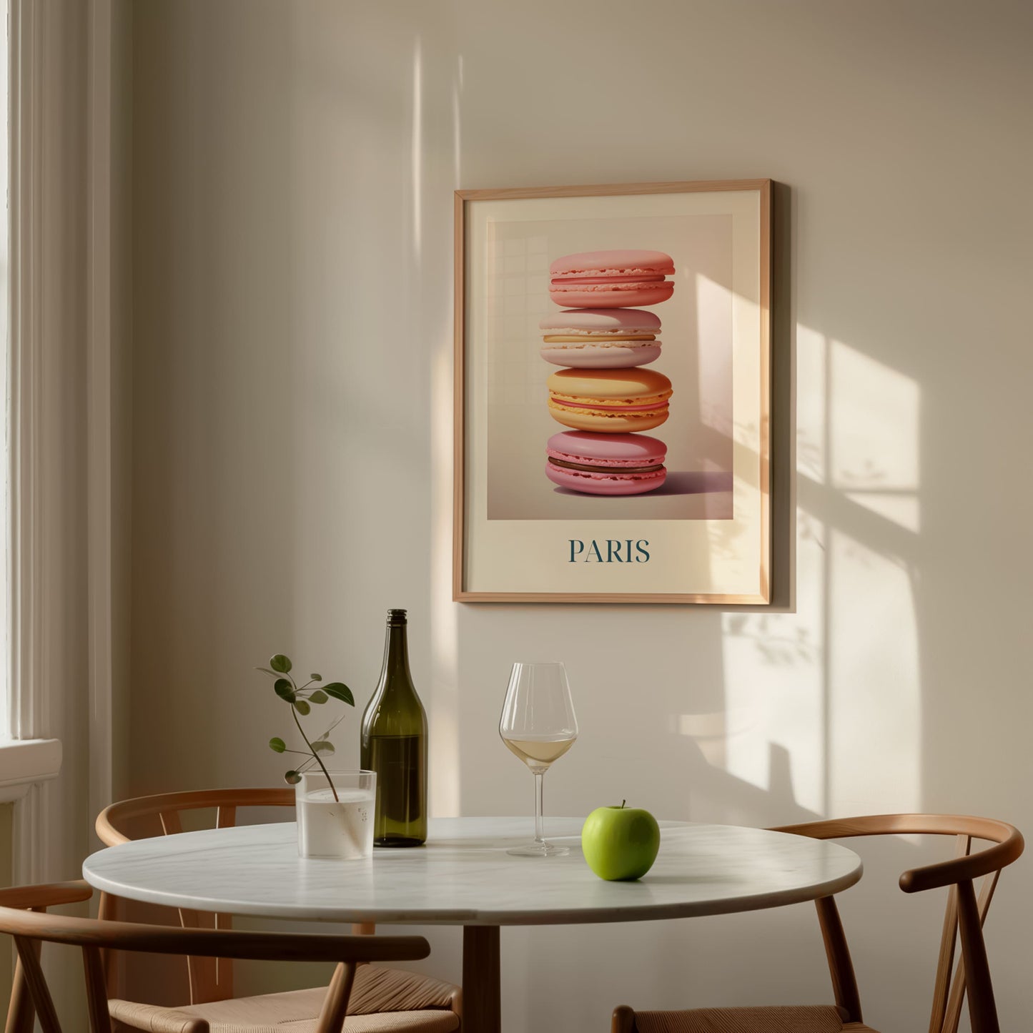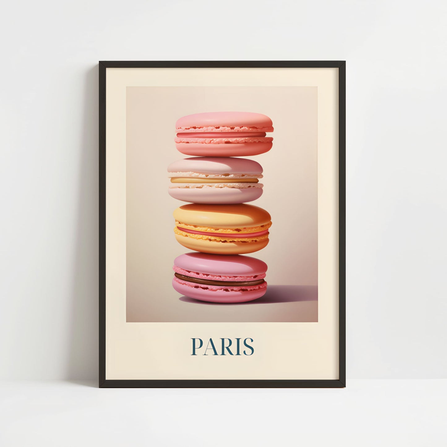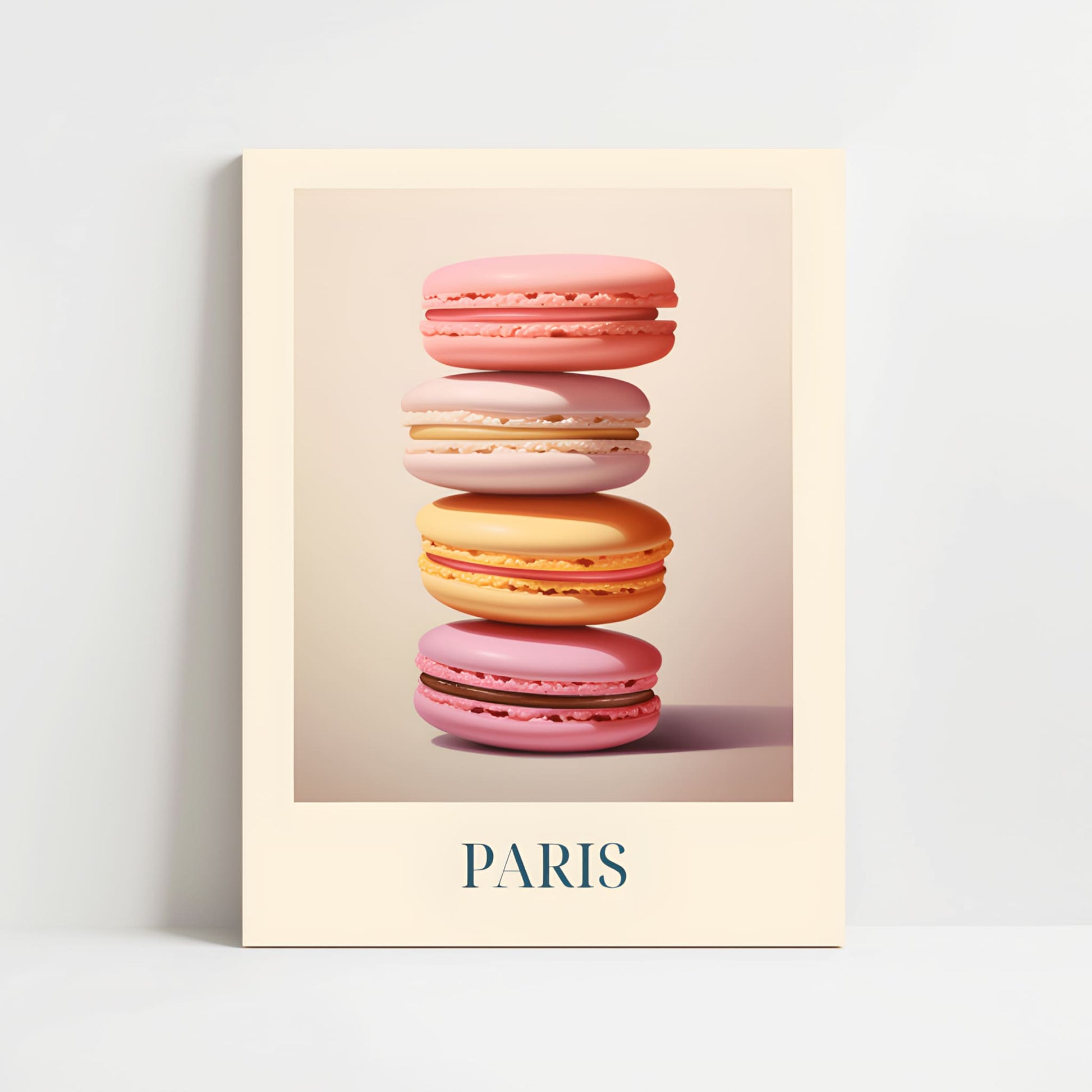Celebrate the delicate charm of Paris with this poster featuring colorful macarons—light, sweet, and full of French elegance. Inspired by patisserie windows, afternoon strolls, and the romance of the city, this artwork brings a touch of Parisian sweetness into your home.