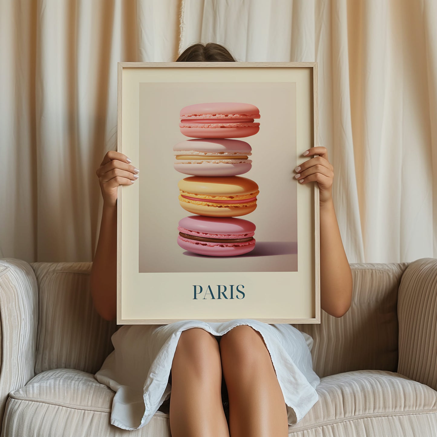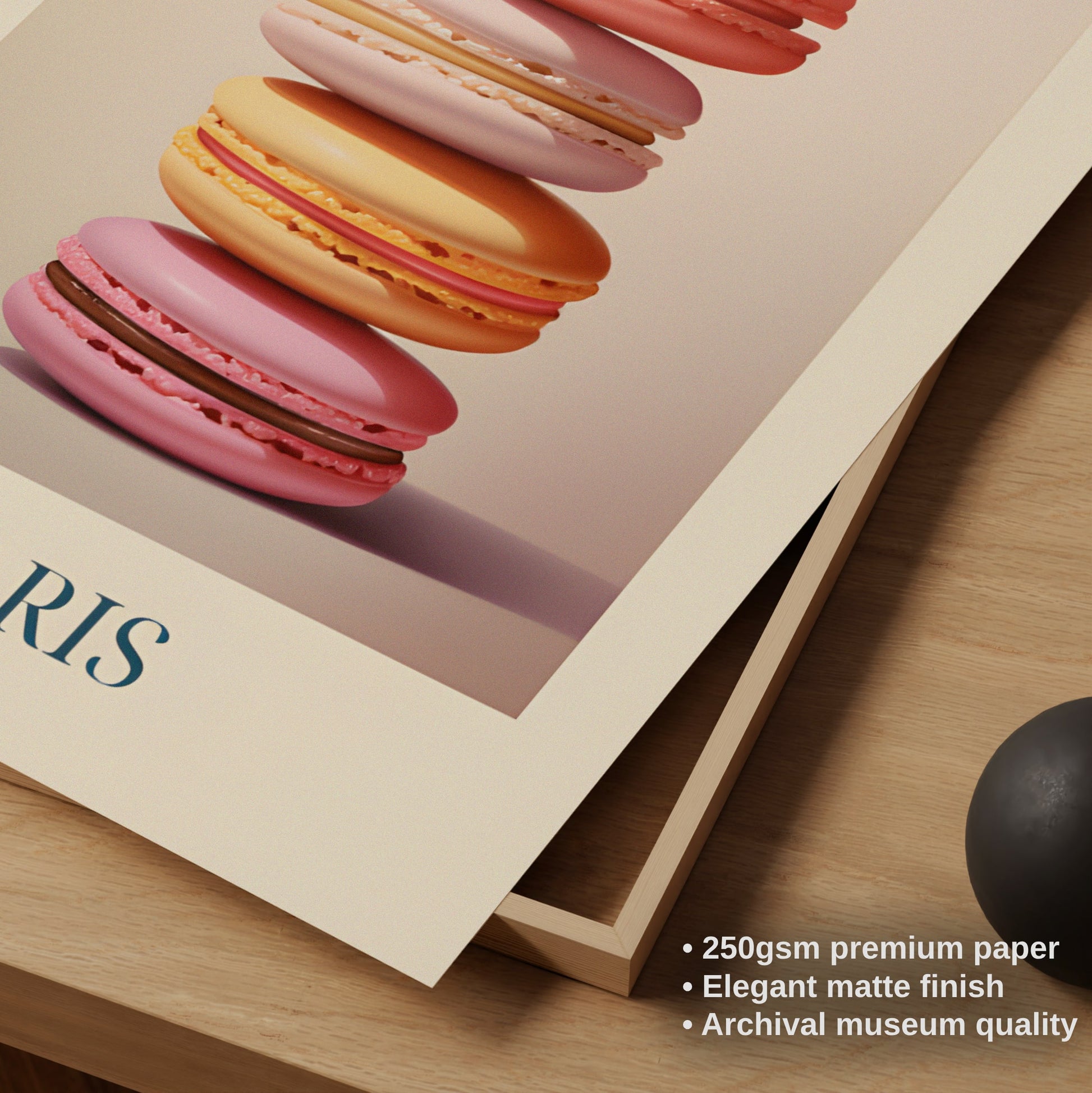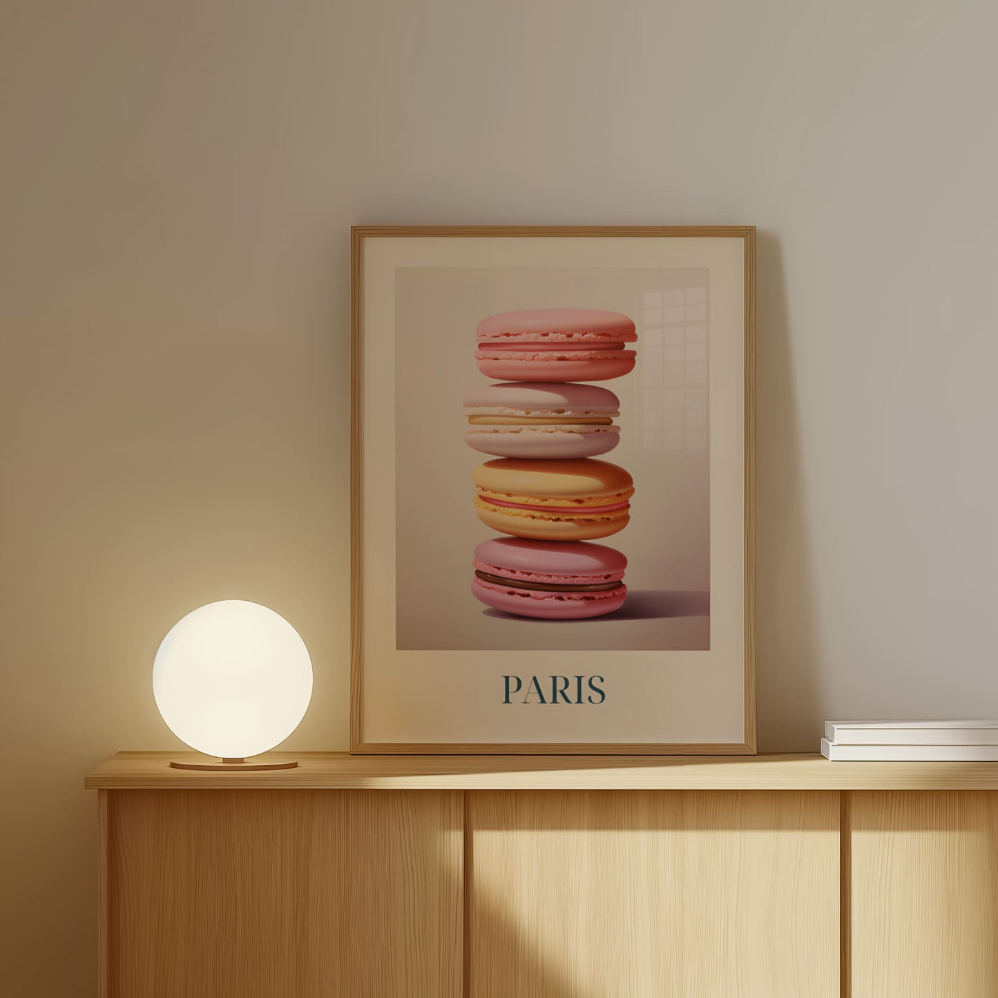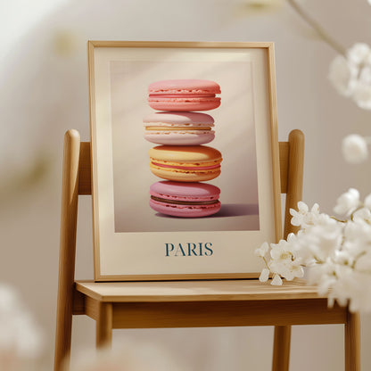 Celebrate the delicate charm of Paris with this poster featuring colorful macarons—light, sweet, and full of French elegance. Inspired by patisserie windows, afternoon strolls, and the romance of the city, this artwork brings a touch of Parisian sweetness into your home.
