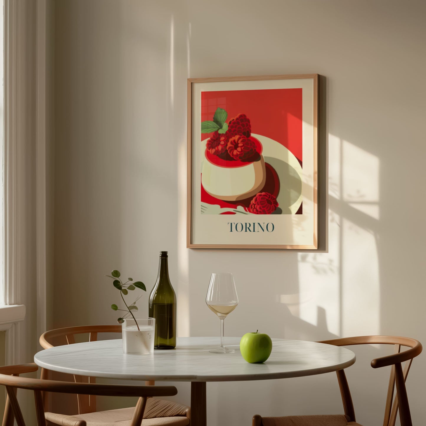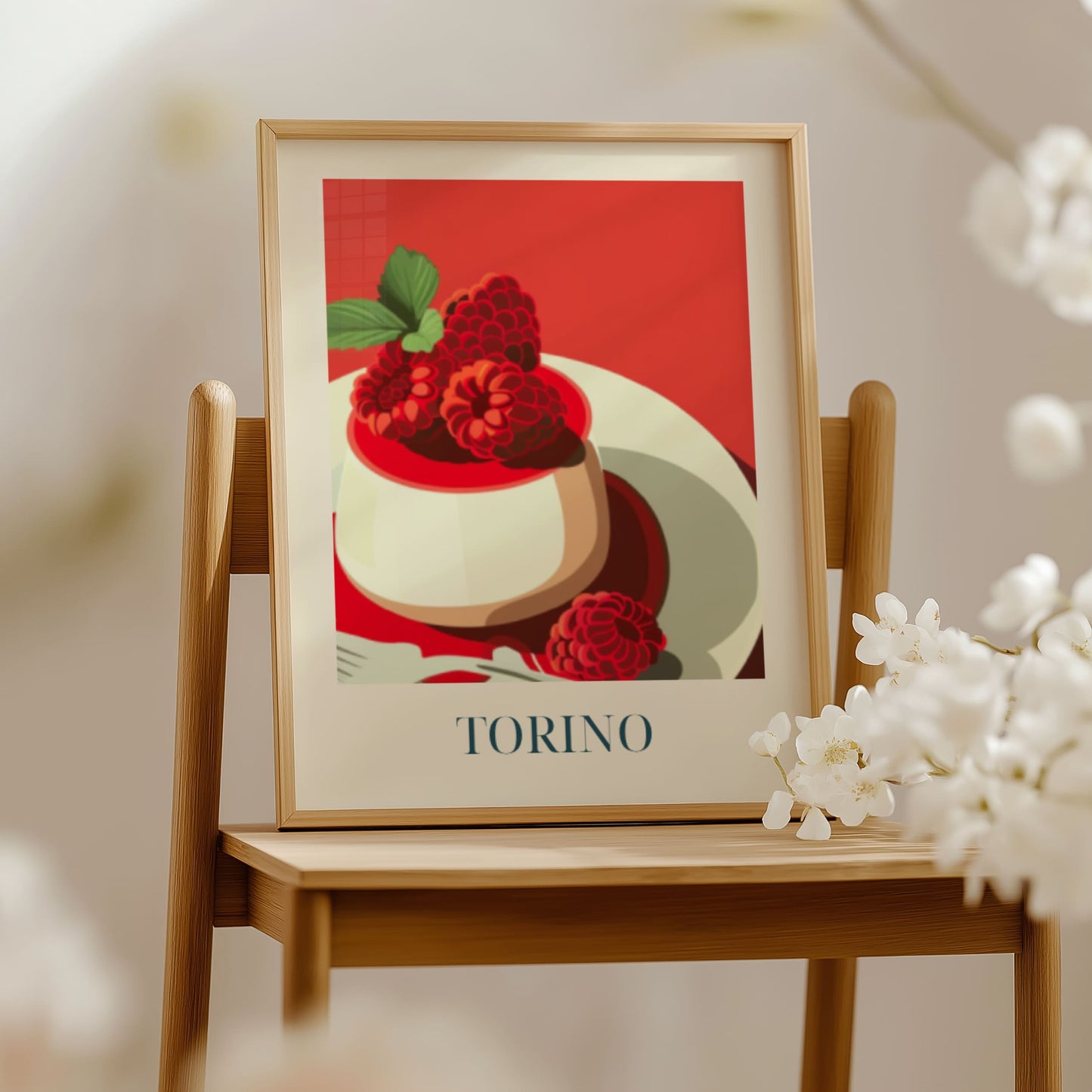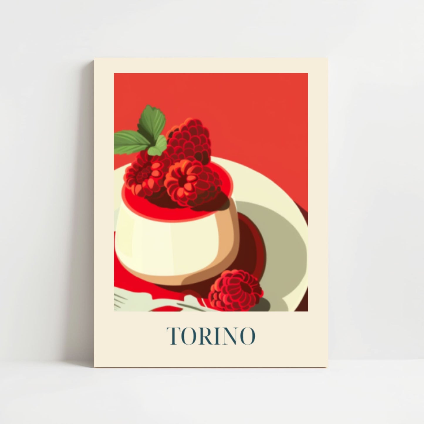 Celebrate the elegance of Torino with this poster featuring silky panna cotta—creamy, delicate, and rich in Italian tradition. Inspired by café culture, quiet afternoons, and the refined sweetness of northern Italy, this artwork brings a soft and timeless touch of Torino into your home.