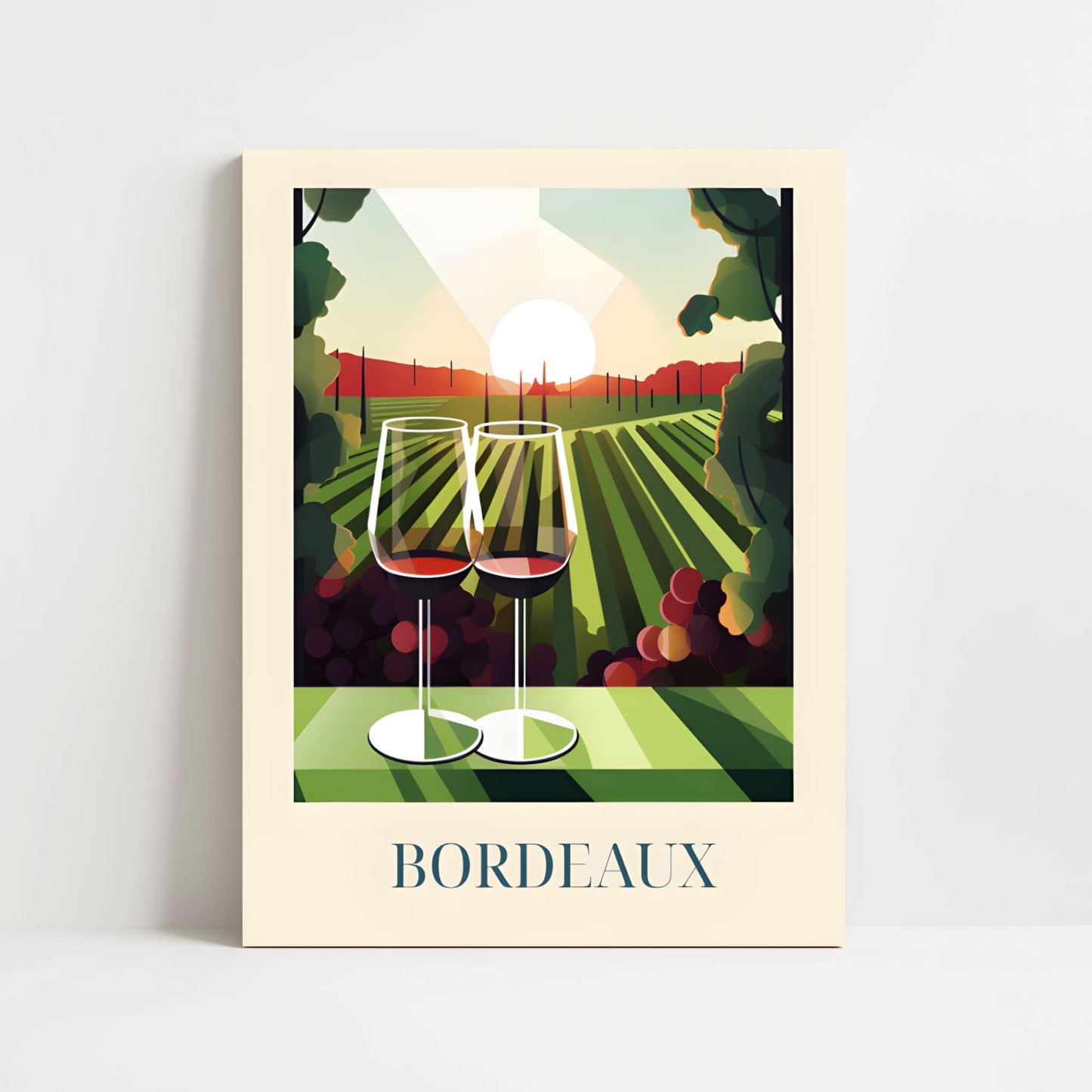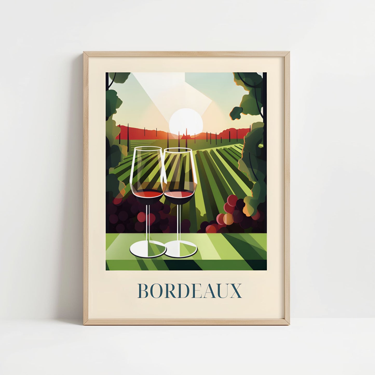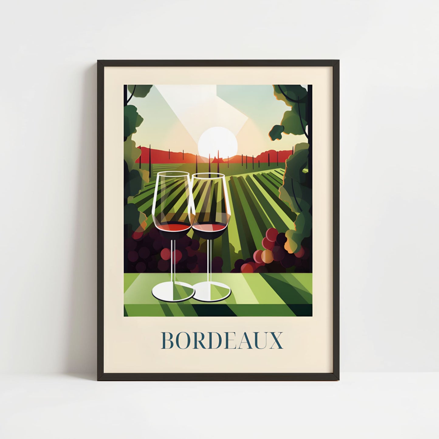 Celebrate the timeless elegance of Bordeaux with this poster featuring red wine—deep, refined, and rich in French tradition. Inspired by rolling vineyards, candlelit dinners, and the romance of wine culture, this artwork brings a warm and sophisticated taste of Bordeaux into your home.