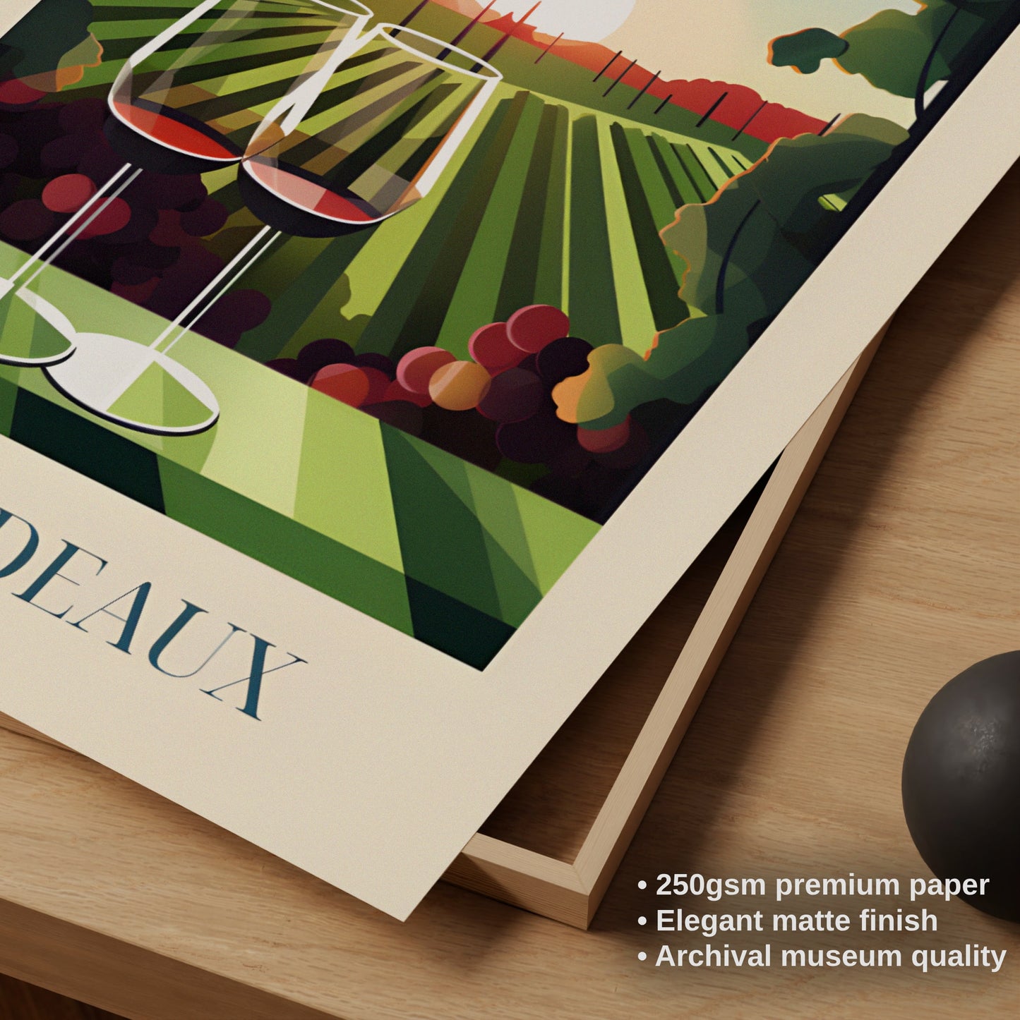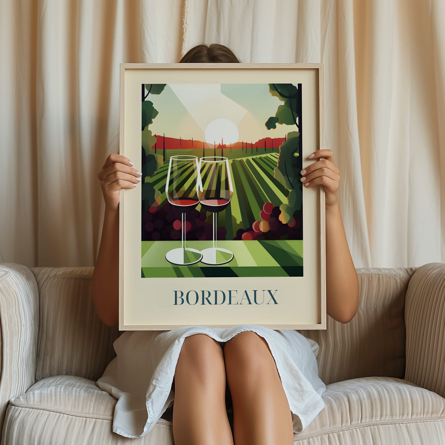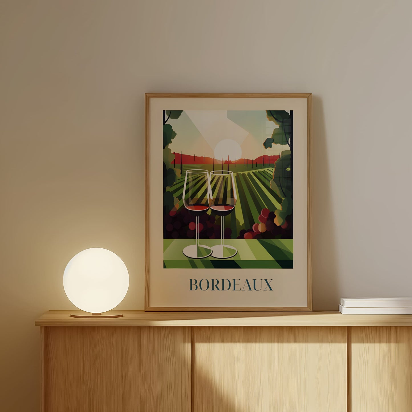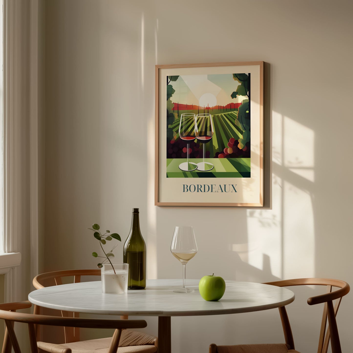 Celebrate the timeless elegance of Bordeaux with this poster featuring red wine—deep, refined, and rich in French tradition. Inspired by rolling vineyards, candlelit dinners, and the romance of wine culture, this artwork brings a warm and sophisticated taste of Bordeaux into your home.