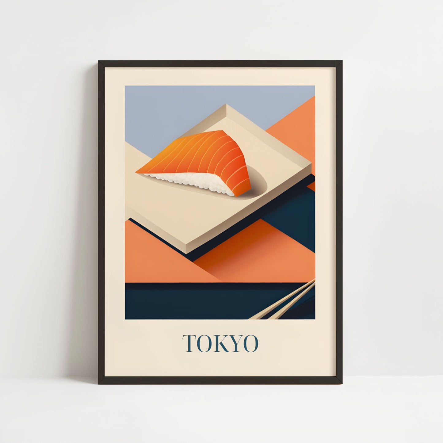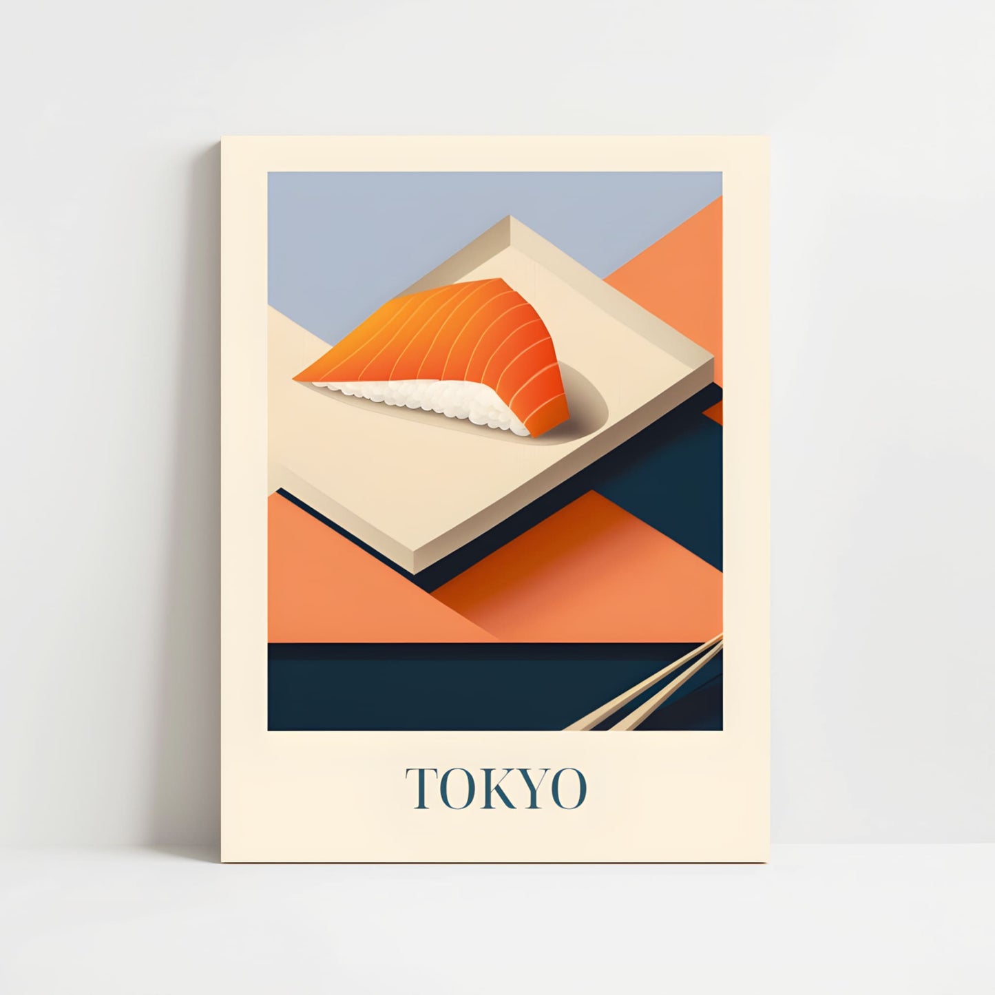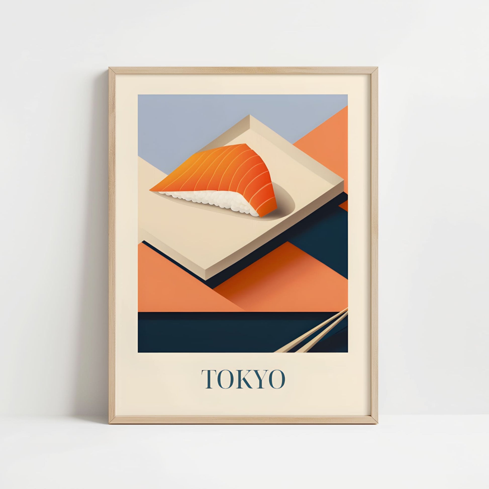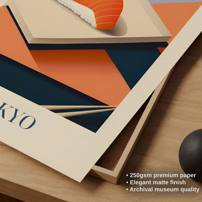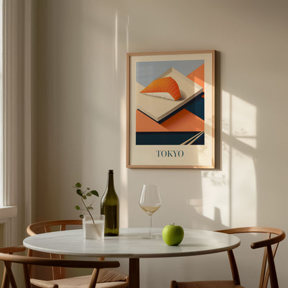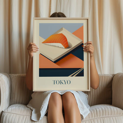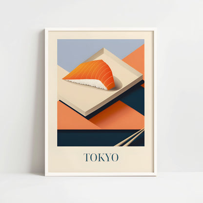 Celebrate the refined simplicity of Tokyo with this poster featuring salmon nigiri—fresh, delicate, and beautifully balanced. Inspired by sushi bars, quiet craftsmanship, and the elegance of Japanese cuisine, this artwork brings a serene and flavorful touch of Tokyo into your home.