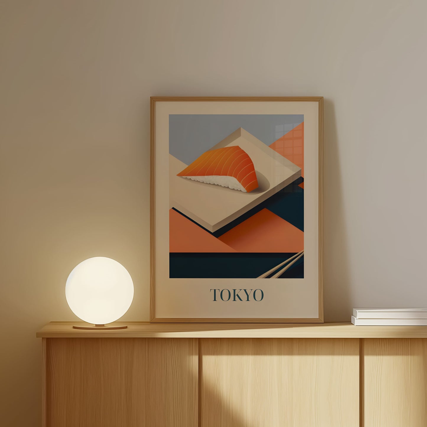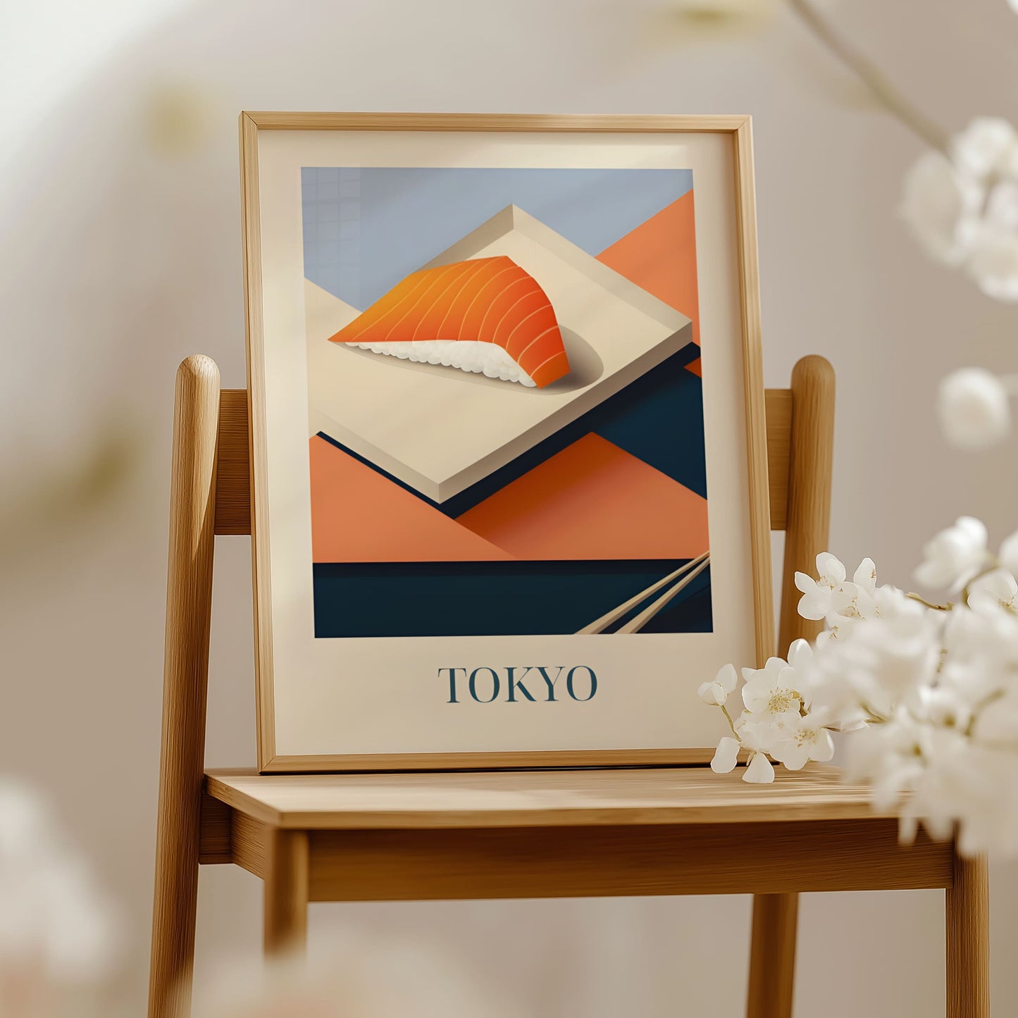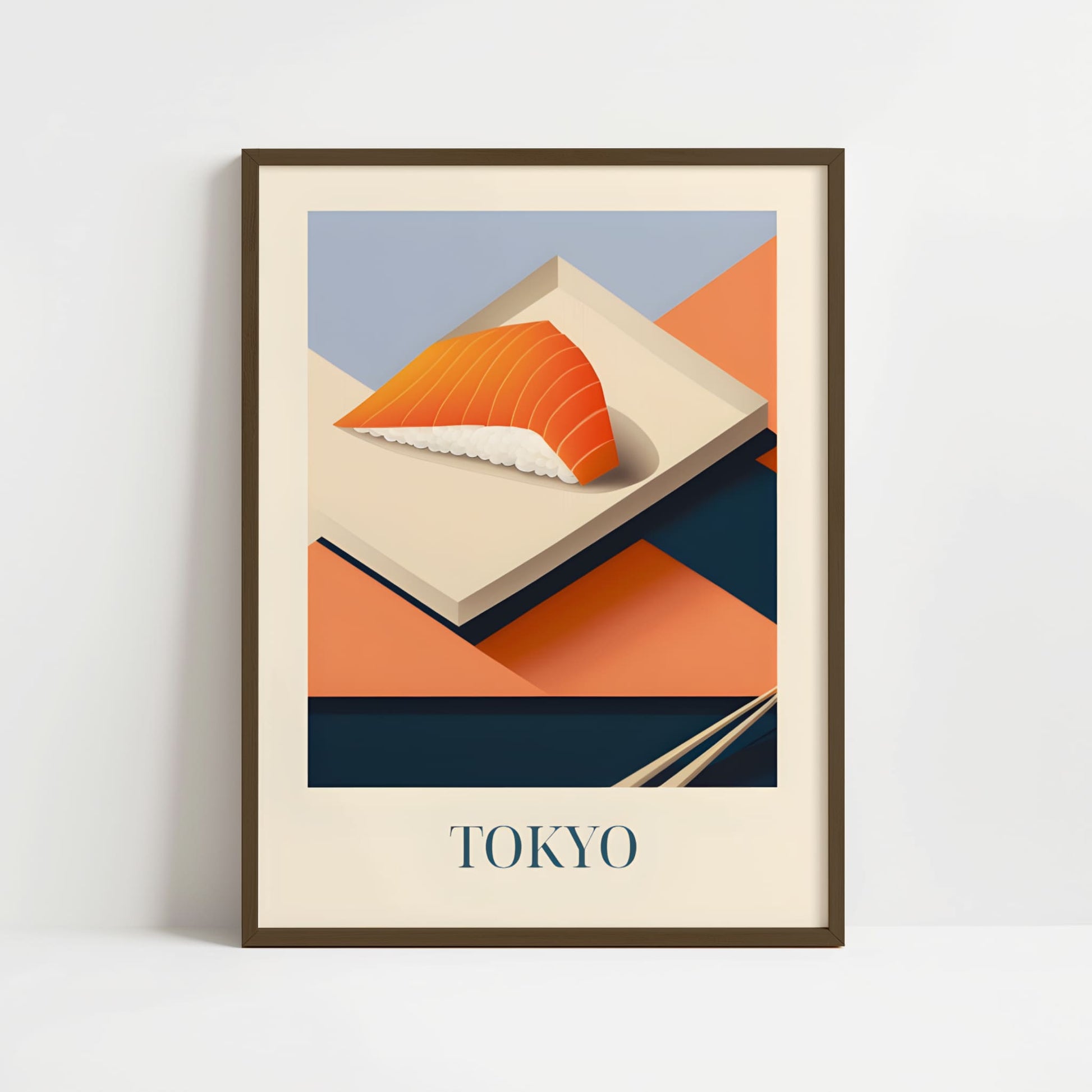 Celebrate the refined simplicity of Tokyo with this poster featuring salmon nigiri—fresh, delicate, and beautifully balanced. Inspired by sushi bars, quiet craftsmanship, and the elegance of Japanese cuisine, this artwork brings a serene and flavorful touch of Tokyo into your home.
