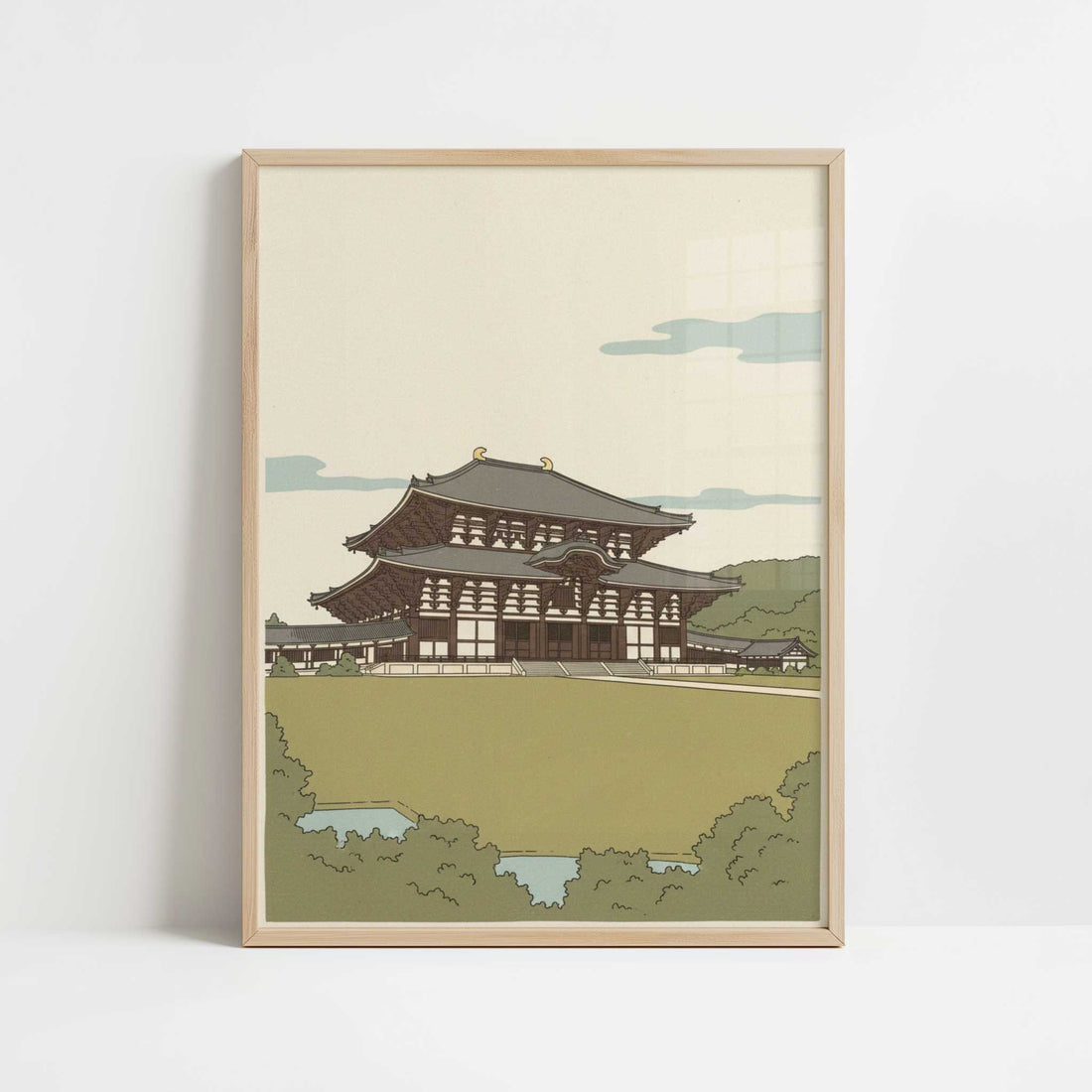 Celebrate the majesty of Tōdai-ji, home to the Great Buddha of Nara and an icon of Japanese heritage. This Japandi-styled art print captures the serene grandeur of one of Japan’s most revered temples. A perfect tribute to Japanese culture and Zen-inspired interior decor.